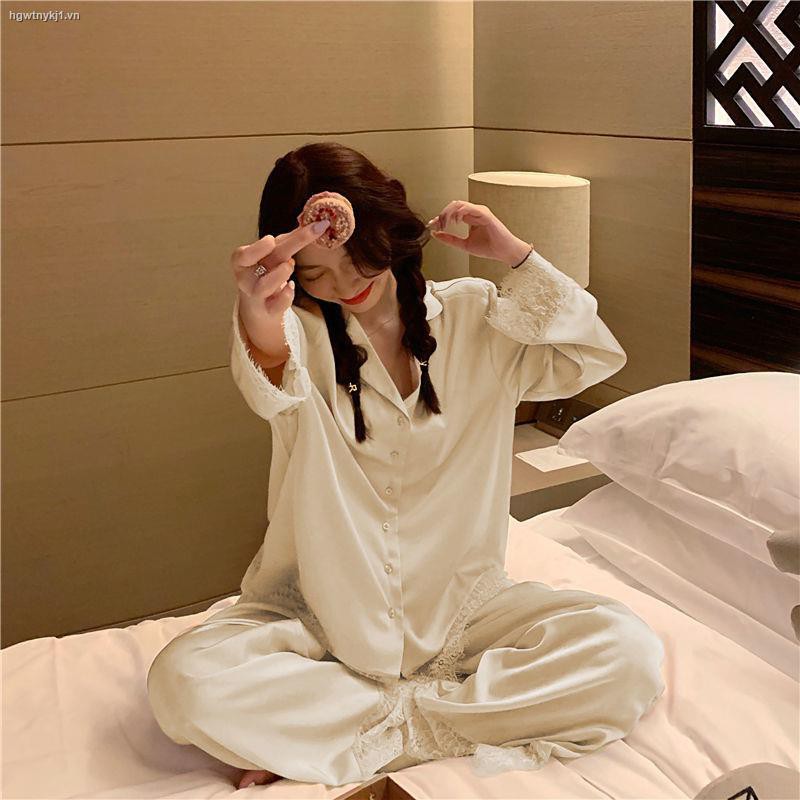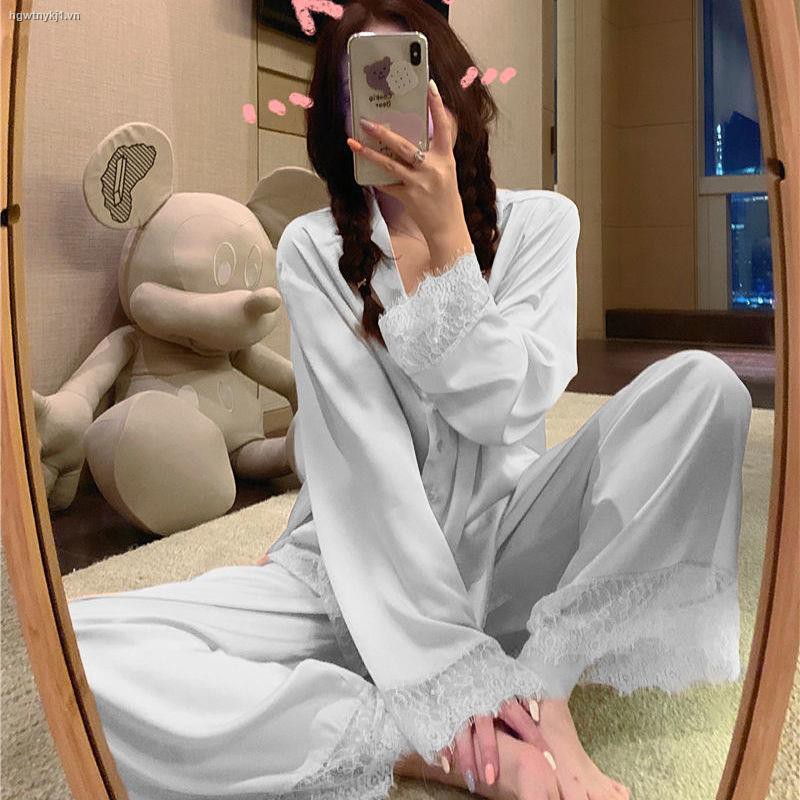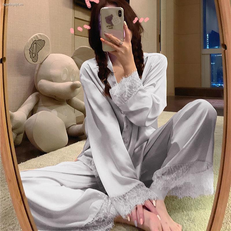 Bộ Đồ Ngủ Lụa Dài Tay Xẻ Tà Thời Trang Cho Nữ free ship